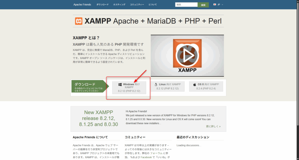 公式サイト: https://www.apachefriends.org/jp/index.html からWindows向けインストーラーをダウンロード